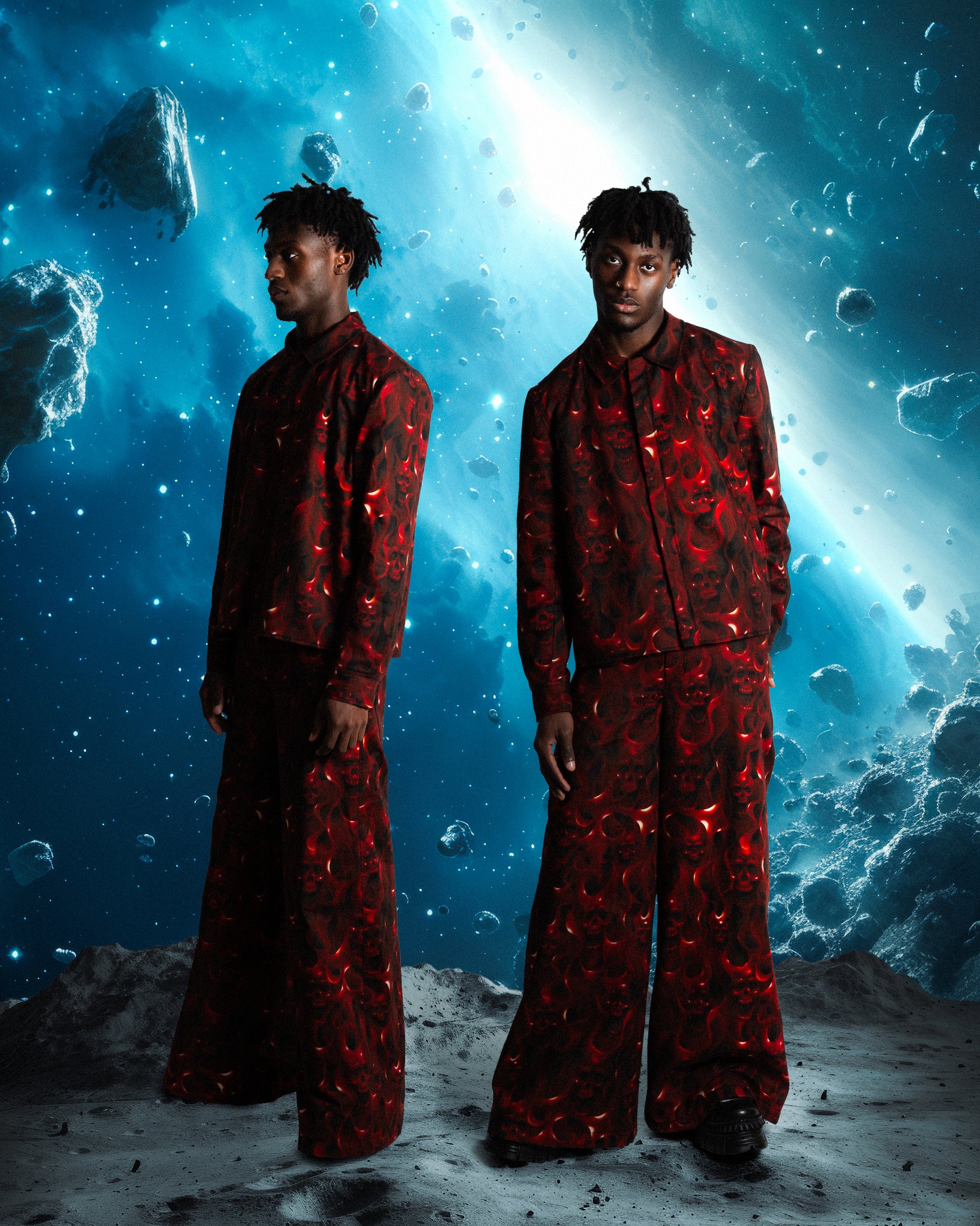 SKULL IN FLAMES DOUBLE HOOD HOODIE